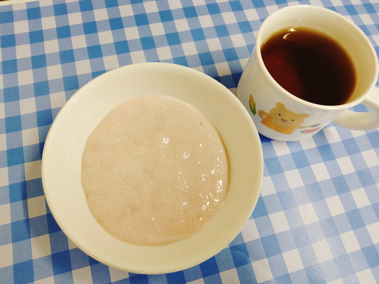 おやつはいちごムースと麦茶です。