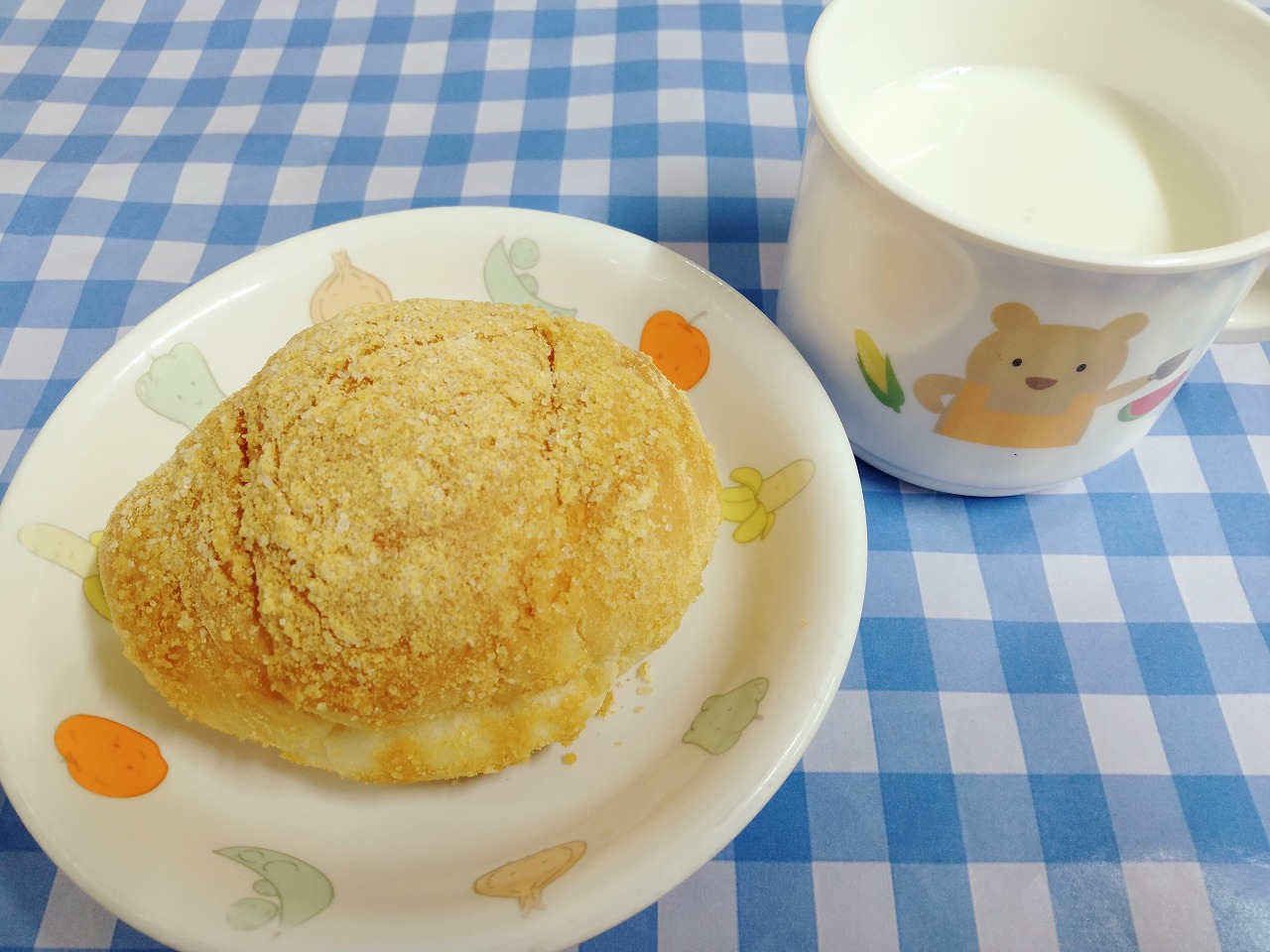 おやつはきなこ揚げパンと牛乳です。