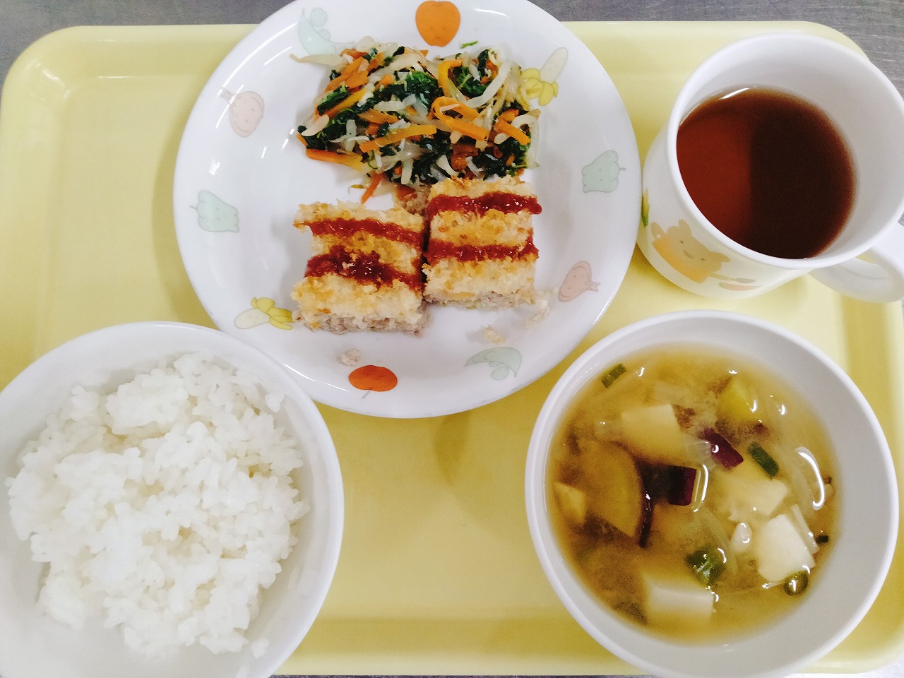 おやつはベーコンのバター醬油ごはんと牛乳です。
