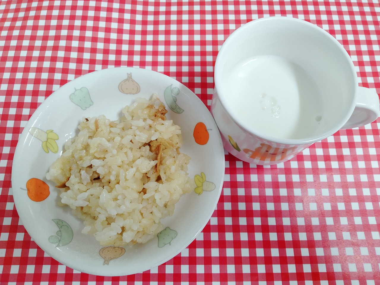 おやつはチーズの炊き込みごはんと牛乳です。