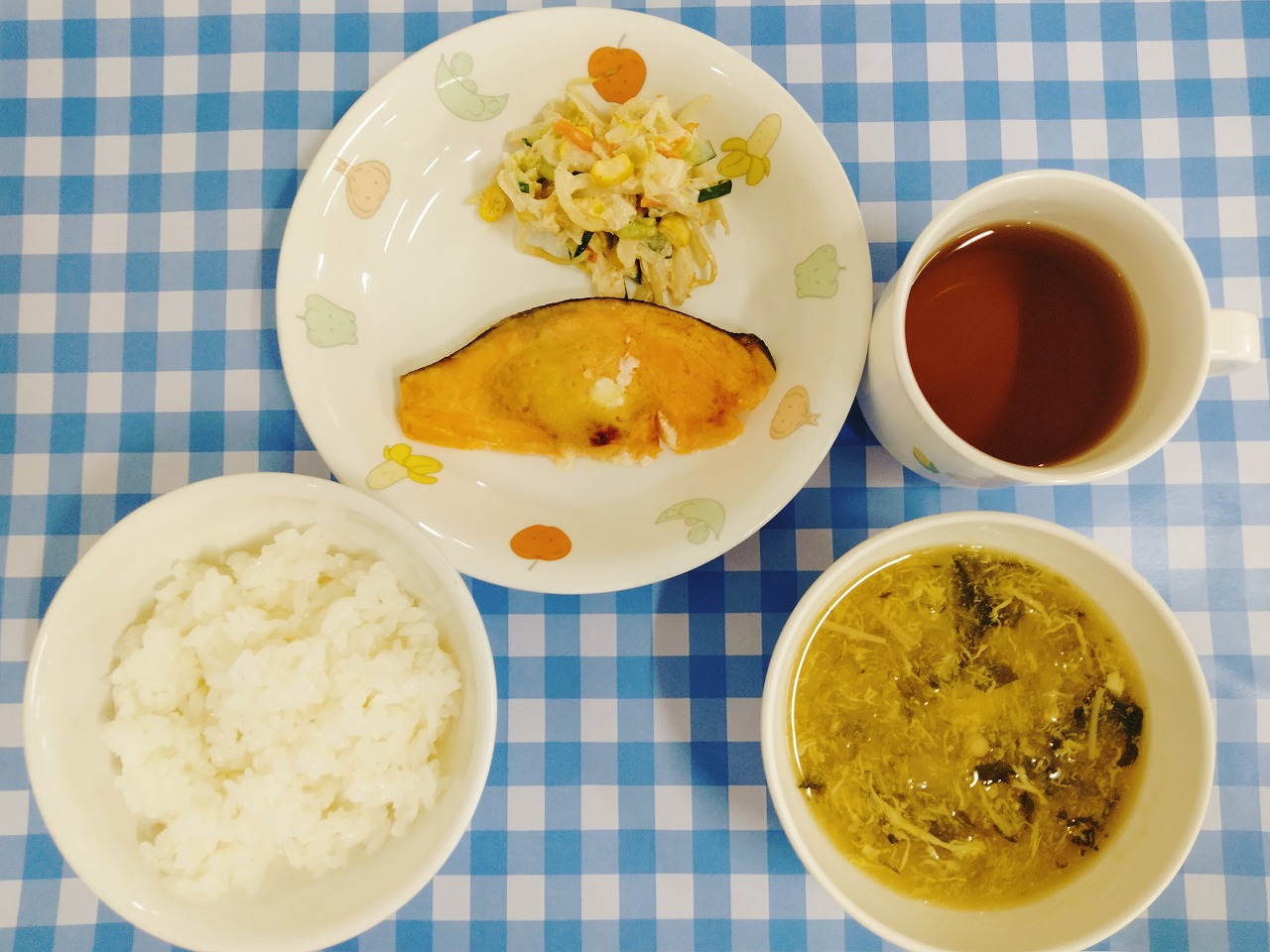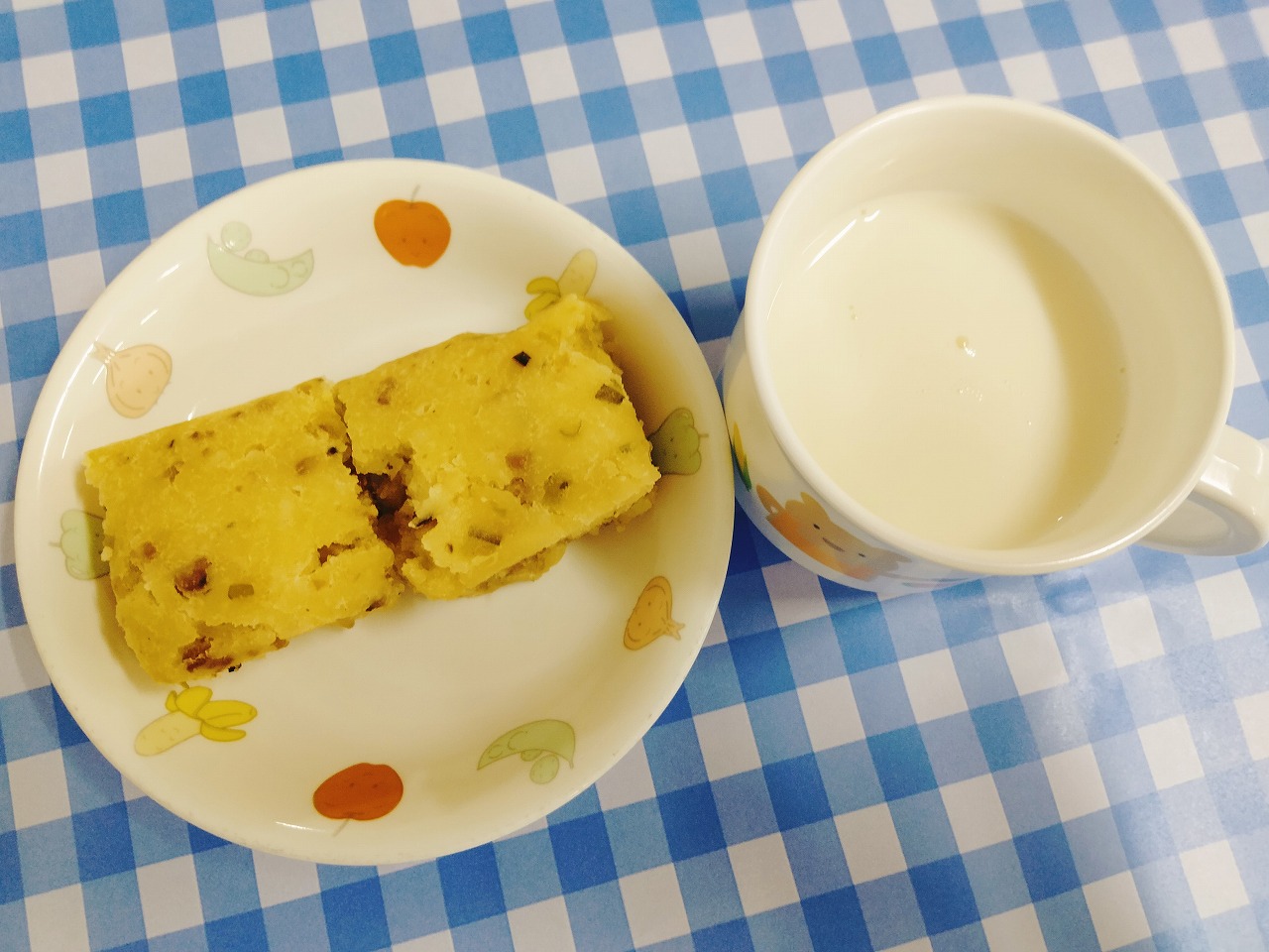 おやつは肉まん風蒸しパンと飲むヨーグルトです。