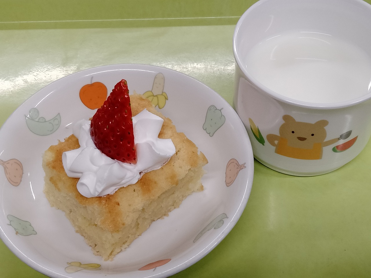 おやつはキャンドルケーキと牛乳です。