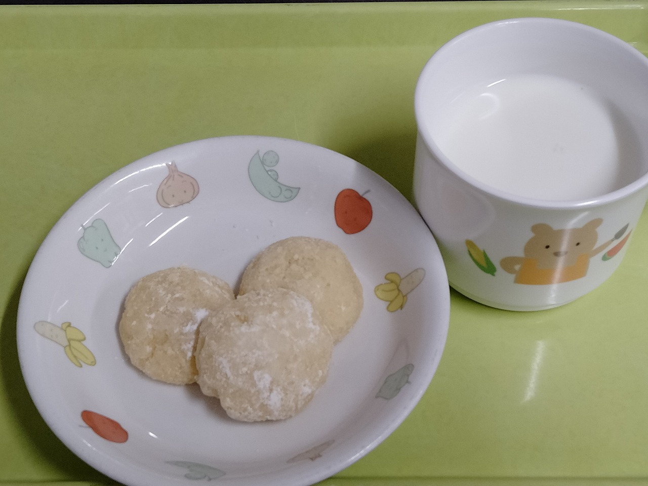 おやつはスノーボールと牛乳です。