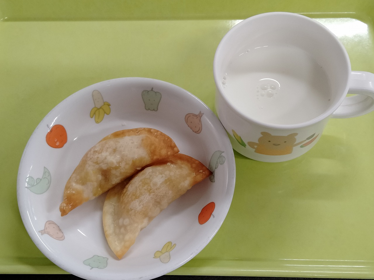 おやつはパンプキンパイと牛乳です。