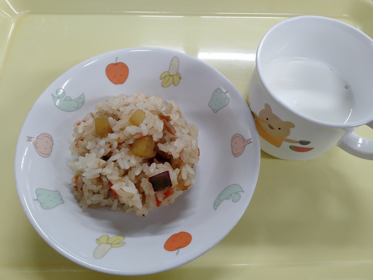 おやつはさつまいもごはんと牛乳です。