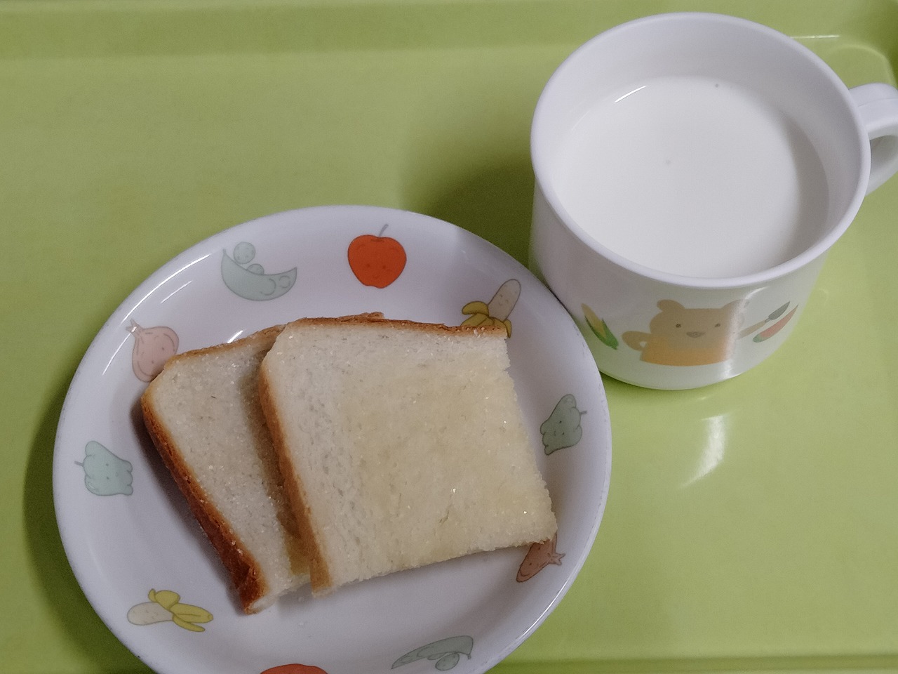 おやつはシュガートーストと牛乳です。