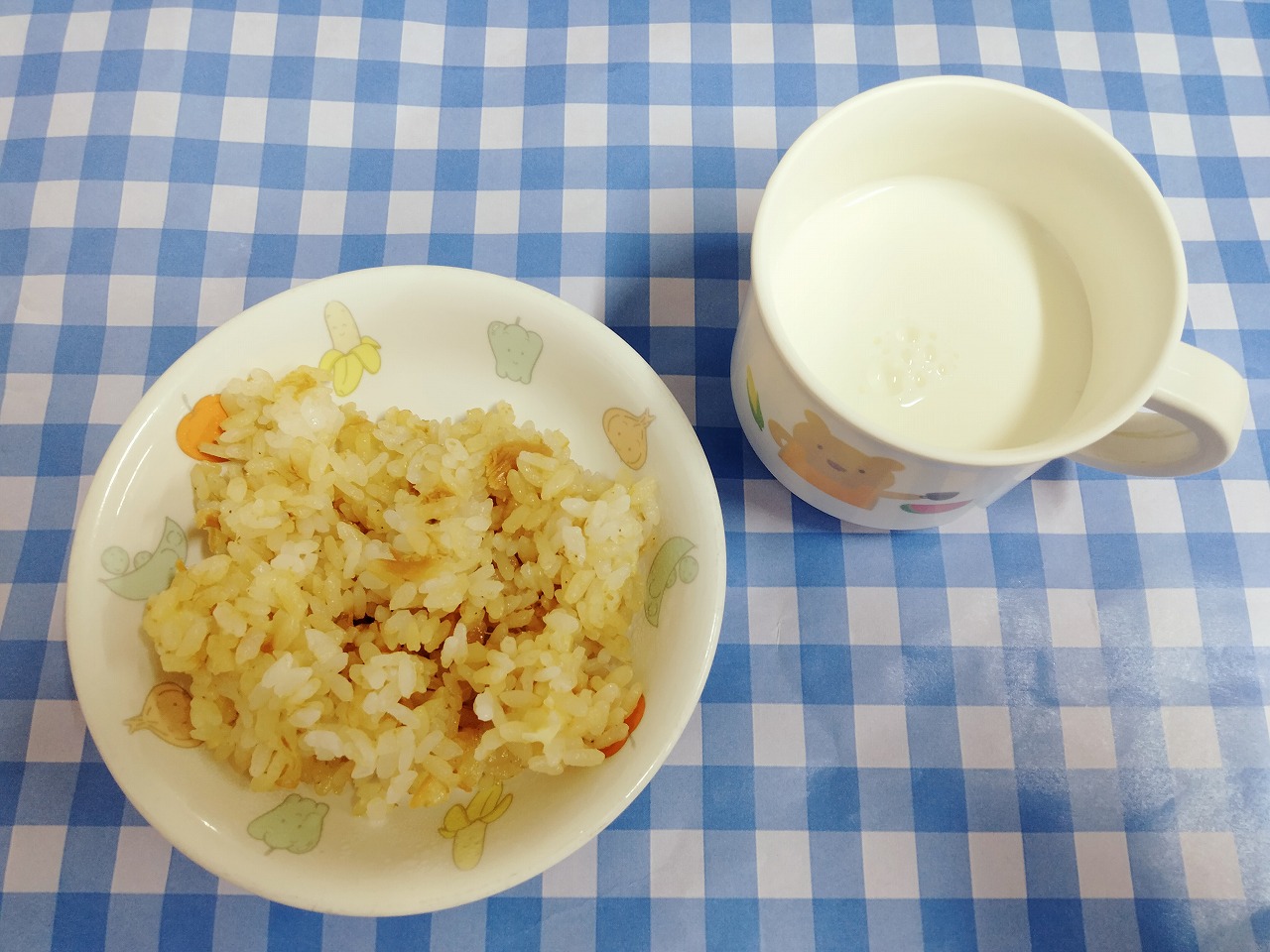 おやつはチーズの炊き込みごはんと牛乳です。