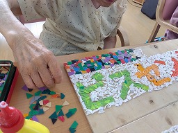 運動ゲーム、卓上ゲーム、作品作り(季節の作り物、バザー品作成など)、短歌&俳句、歌声喫茶(職員によるキーボード演奏や大正琴演奏、懐かしい映像を見ながら歌を楽しみます)、園芸活動(園庭脇にある畑で野菜を育てています)、クッキングクラブ(毎日お手伝いしていただいています)他