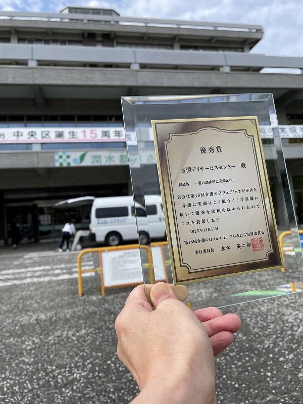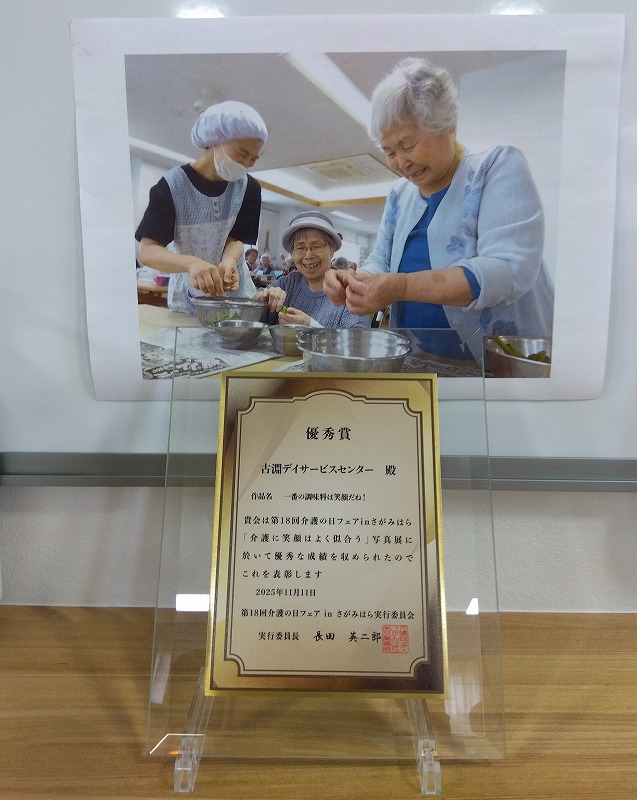 相模原市の介護の日の恒例企画「介護に笑顔はよく似合う」の写真展で古淵デイサービスセンター、優秀賞に選ばられました~!!!!