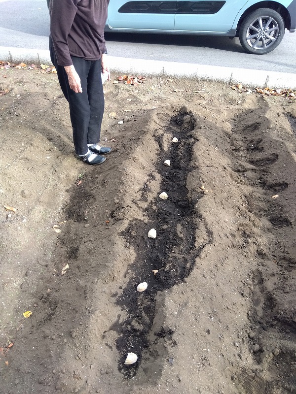 灰を付けて植えると良いとのことで…急遽仏壇のお線香の灰をいただき(ボランティアさんがすぐに届けてくださいました!ありがとうございます!)、午後植えました。