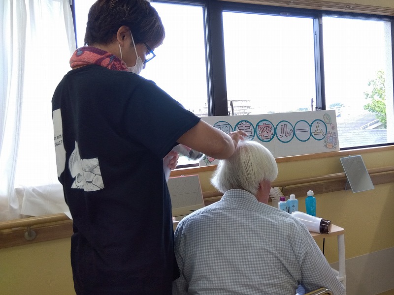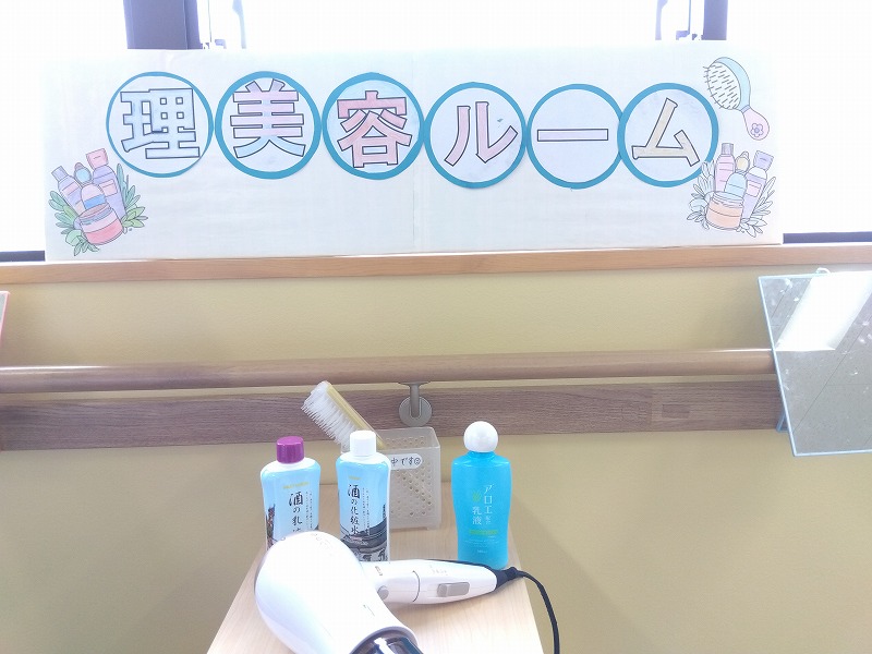 午後の入浴の時間帯では窓際が理美容コーナーになります♪
