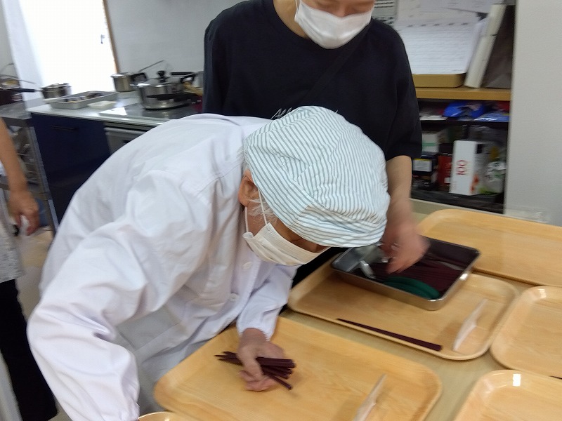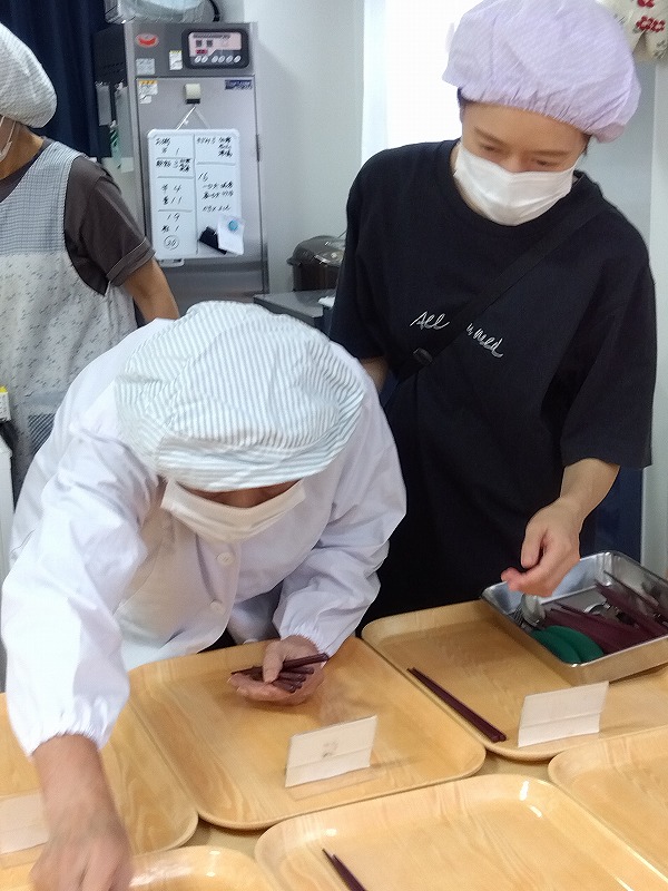 トレーや箸を並べたり、盛り付けをしたり!