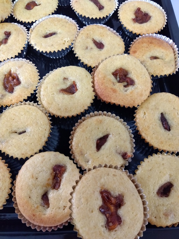今日のおやつはデイサービスで作った干し柿が入ったマフィンです♪