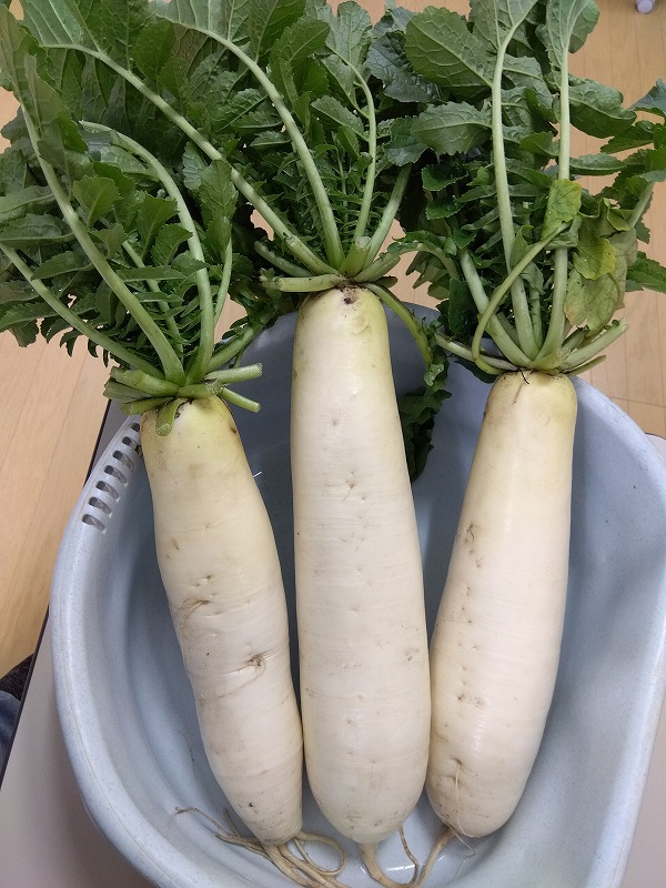 明日のお昼ご飯は「おでん」なので、大根を収穫しました!!