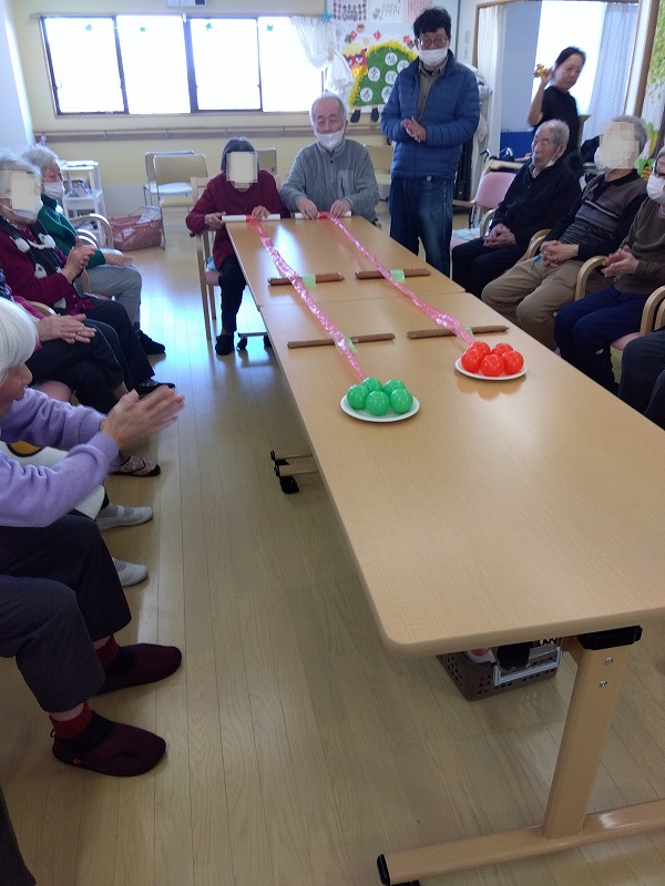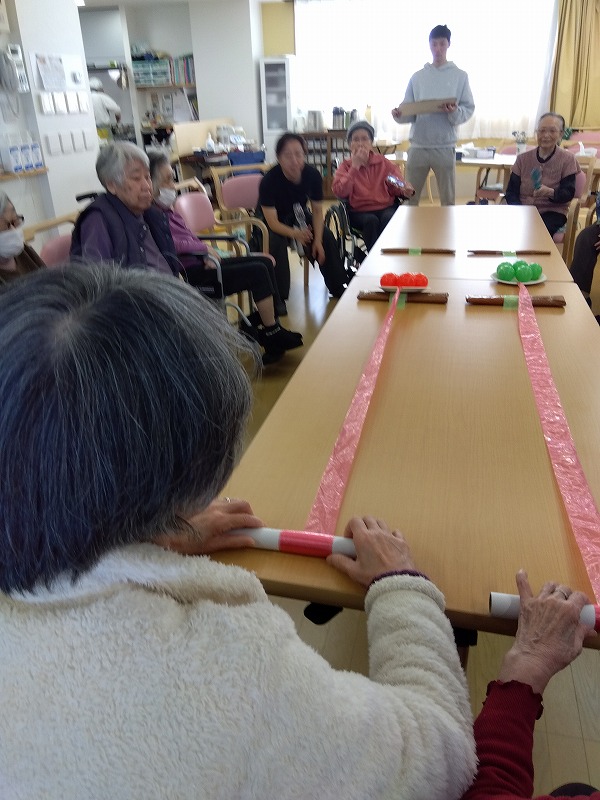 紙皿にのったボールが落ちないように慎重に巻き取っていただきます!!